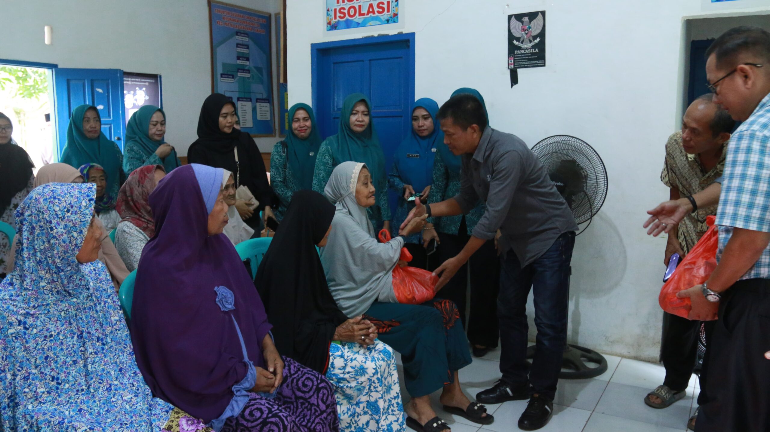 Pj. Bupati Takalar Dr. Setiawan Aswad,.M.Dev,.Plg diwakili Staf Ahli Bupati H. Abd Haris Kulle menyalurkan paket sembako untuk masyarakat miskin ekstrem di Kecamatan Marbo dan Kecamatan Pattallassang Kab. Takalar, Senin (8 April 2024).