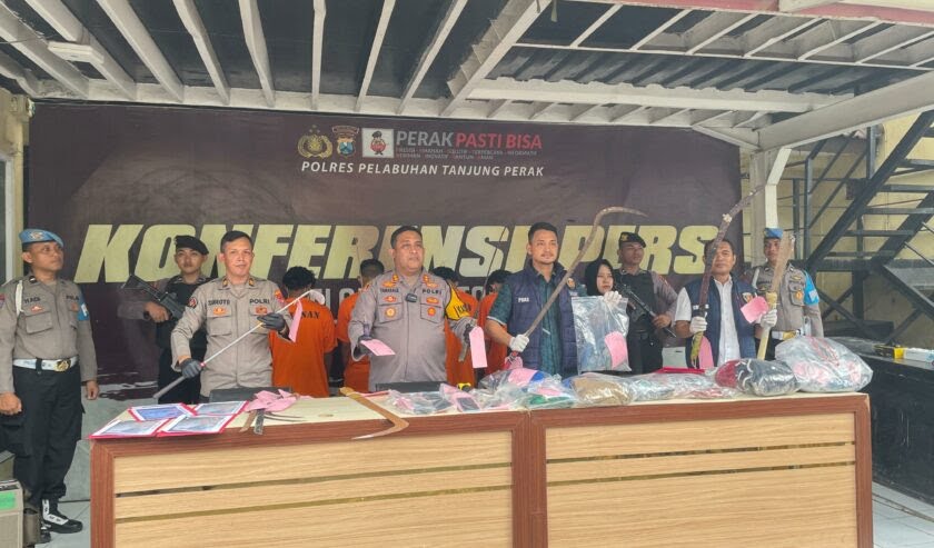 “Sementara kami berhasil mengamankan enam pelaku, dua di antaranya masih dibawah umur,” ucapnya dalam ungkap kasus di Polres Pelabuhan Tanjung Perak Surabaya. Senin, 29/4/2024.