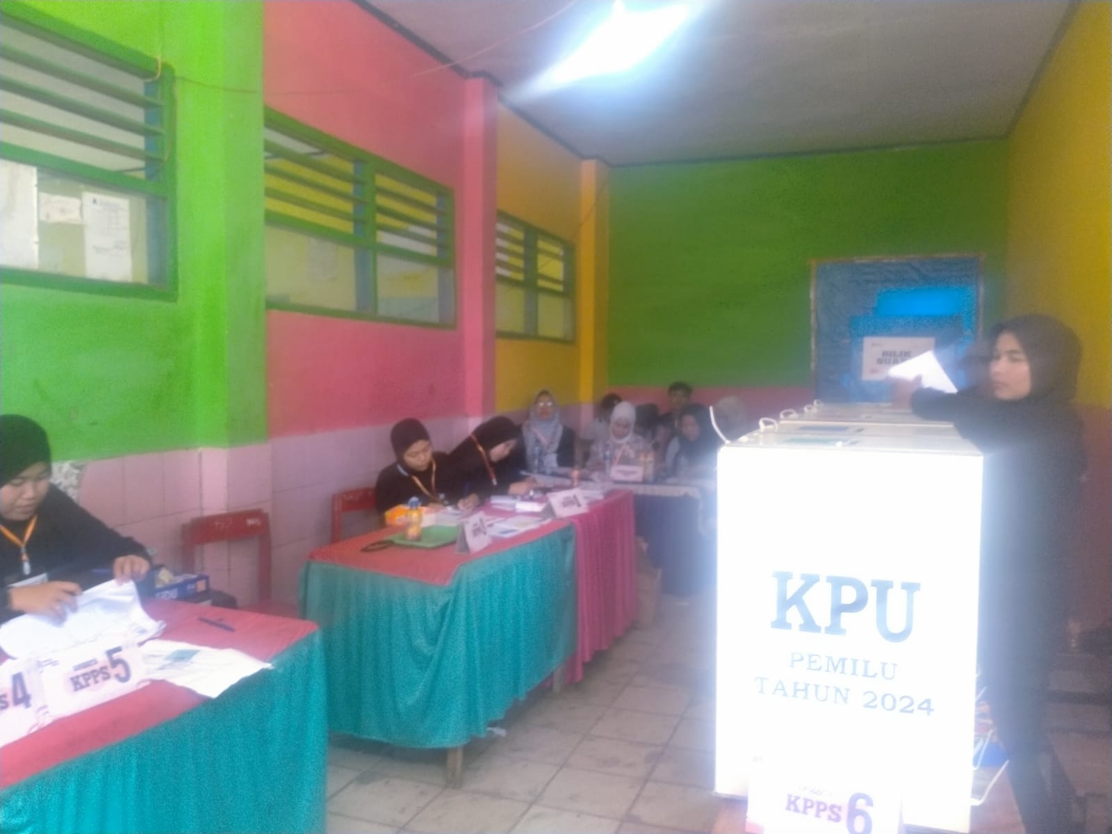 “Kendati demikian Kelompok Panitia Penyelenggara Pemungutan Suara (KPPS) masih melakukan persiapan menata kotak suara serta membuka surat suara yang dilihat langsung oleh para saksi dari partai politik. Sekitar pukul 08.00 Wita, panitia memanggil warga yang telah melakukan proses pendaftaran untuk mencoblos”, ujarnya.