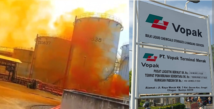 Sebelumnya perusahaan jasa penyimpanan bahan kimia, PT Vopak Indonesia diduga mengalami kebocoran gas di Kota Cilegon, Banten.