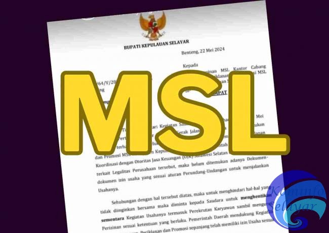 Dalam surat tersebut dijelaskan sebagai Tindak Lanjut dari Kegiatan Saudara pada Hari Ahad tanggal 19 Mei 2024 yaitu Pertemuan Akbar MSL dan Gerak jalan Santai, serta setelah dilakukan Klarifikasi terhadap status Hukum Kegiatan Kantor Cabang Pemasaran, Perikanan dan Promosi MSL Kabupaten Kepulauan Selayar oleh Pemerintah Daerah dan sesuai Koordinasi dengan Otoritas jasa Keuangan (0JK) Sulawesi Selatan dan Sulawesi Barat. Terkait Legalitas Perusahaan tersebut.