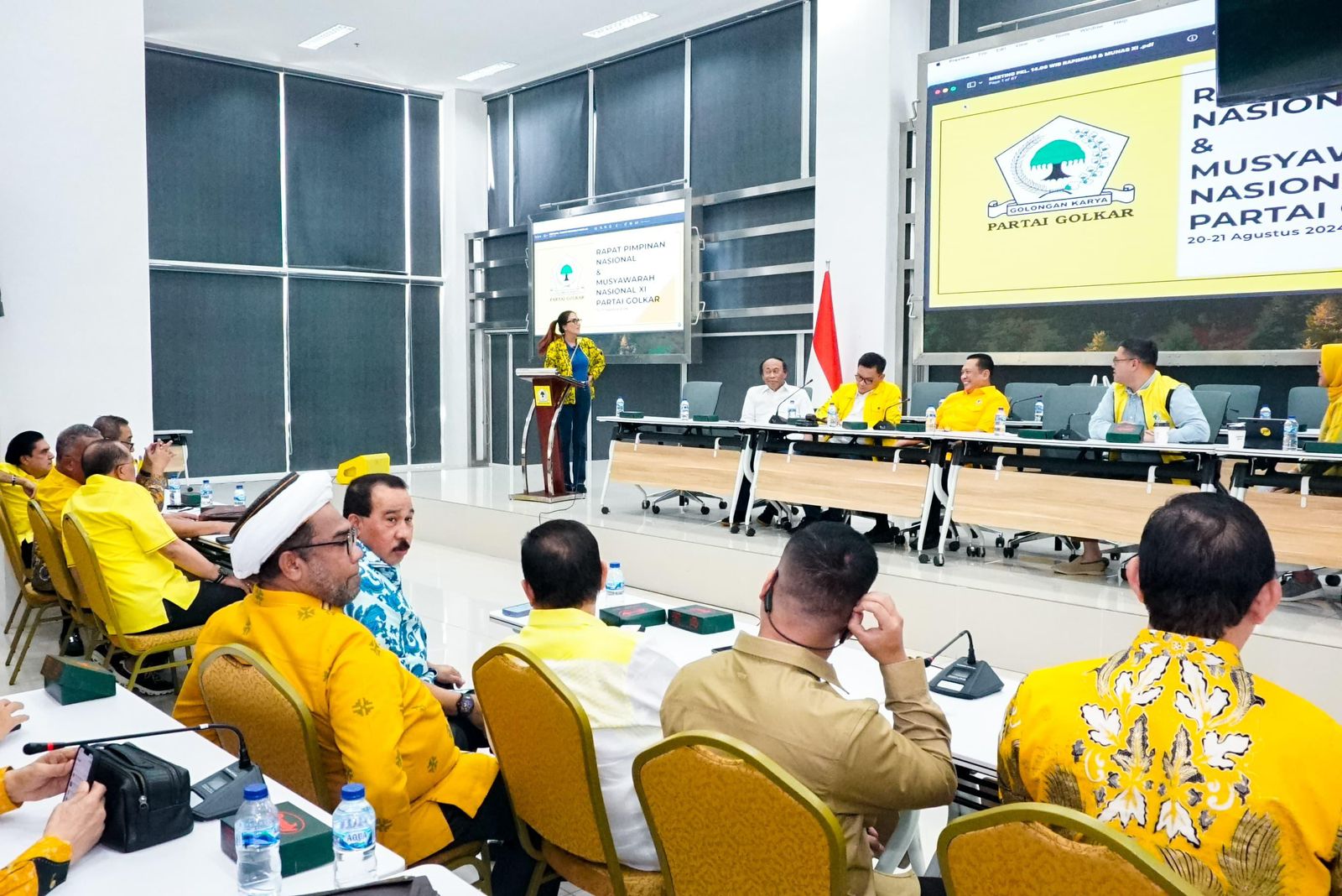 Tema Rapimnas dan Munas Partai Golkar 2024 adalah ‘Golkar Solid untuk Indonesia Maju’. Para ketua DPD (Dewan Pimpinan Daerah) dari 38 provinsi dan 558 kabupaten/kota akan mengikuti Rapimnas dan Munas.
