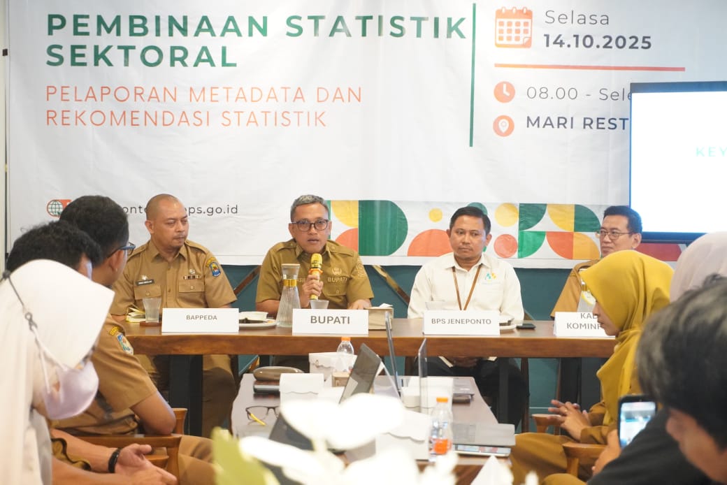 Dalam sambutannya, Bupati Jeneponto, H. Paris Yasir, memberikan apresiasi atas terselenggaranya kegiatan ini dan menegaskan pentingnya data dalam proses pengambilan keputusan pemerintah daerah.