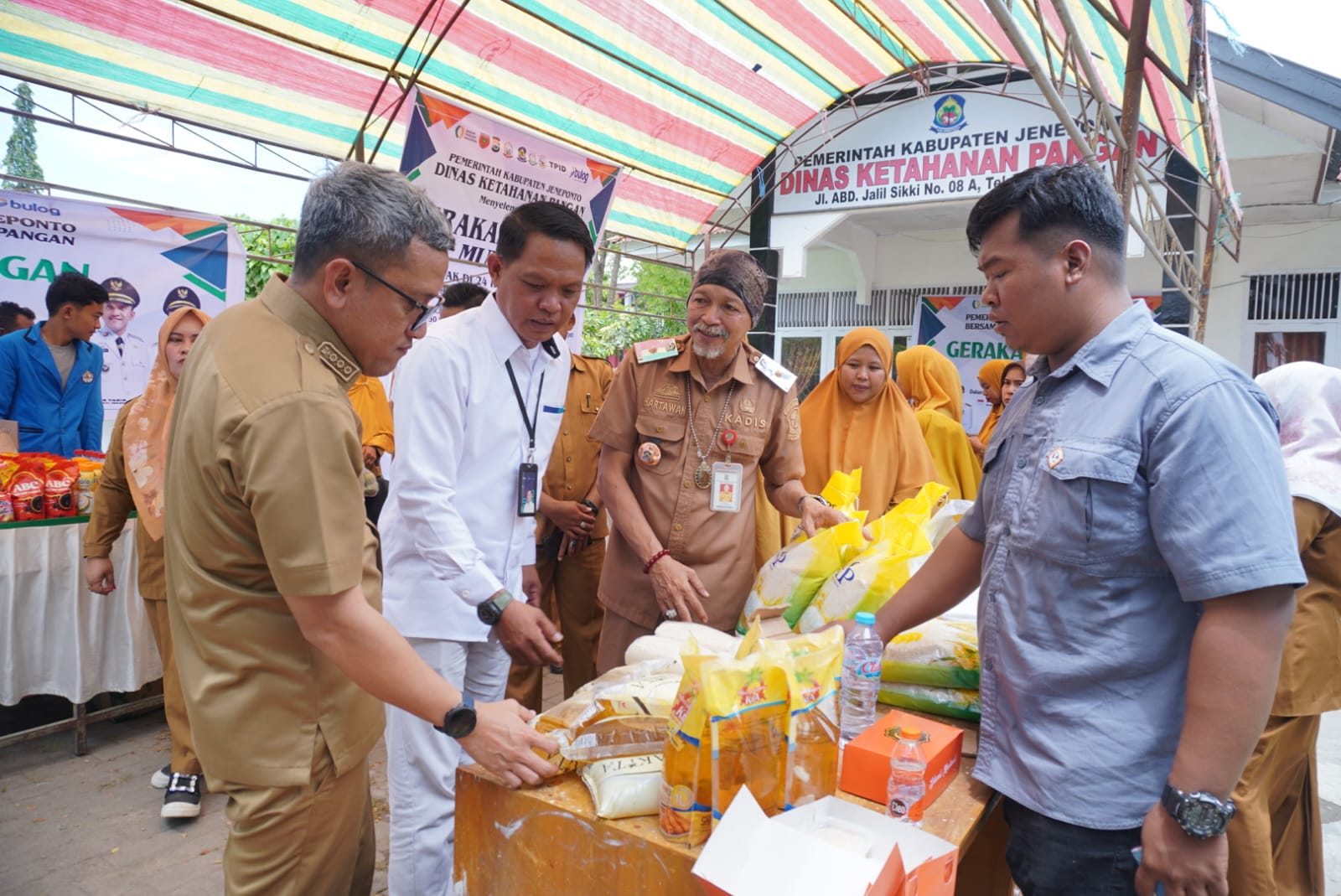 Kegiatan tersebut turut dihadiri Kepala Dinas Perdagangan Jeneponto, H. Manrancai Sally, S.STP., M.Si., Kabag Ekonomi Setda Jeneponto, perwakilan Bulog, perwakilan Misi Pasaraya, serta Kelompok Wanita Tani dari Kecamatan Rumbia. Warga yang hadir terlihat antusias memanfaatkan layanan pangan murah yang disediakan.