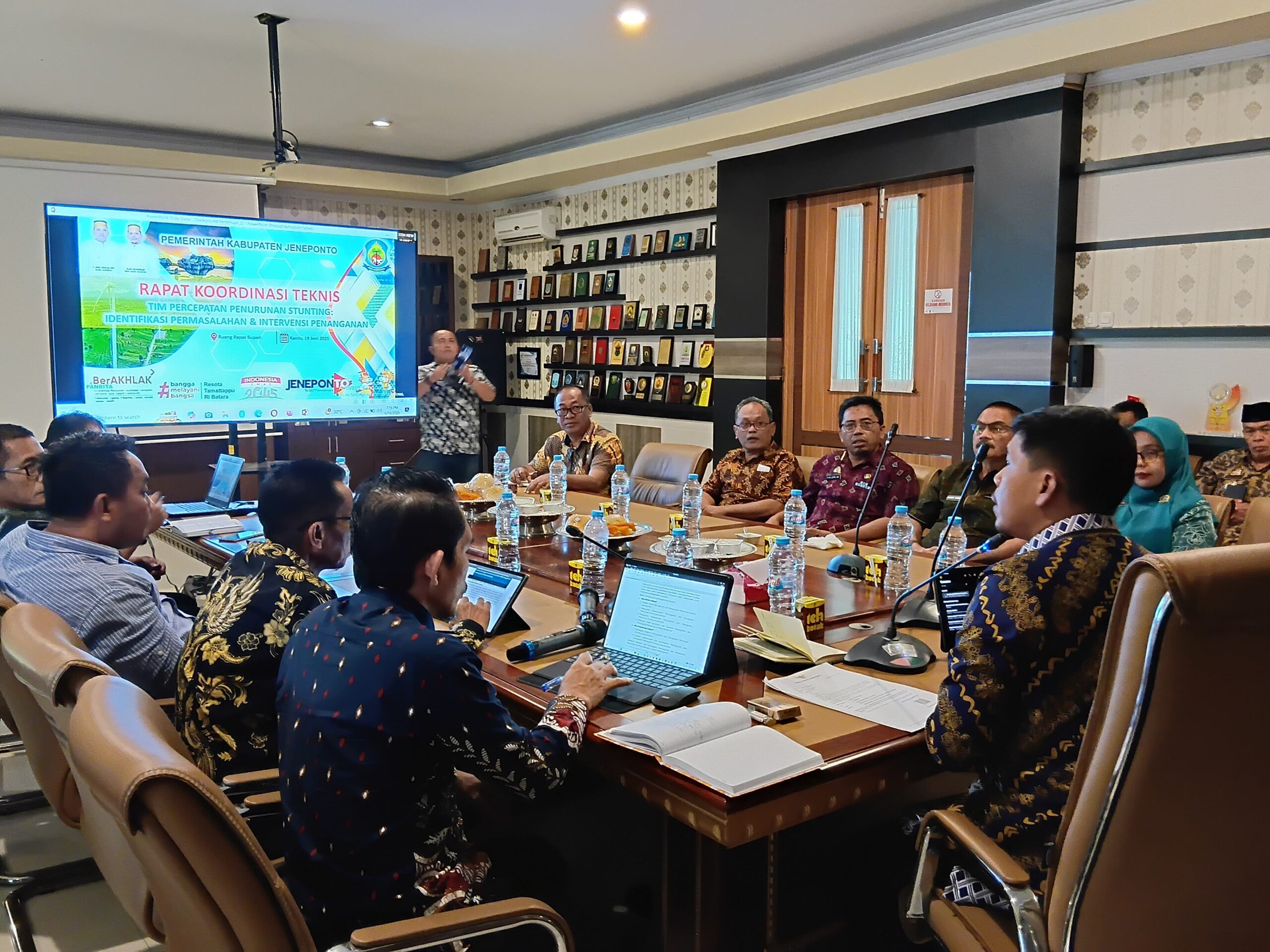 Bupati Jeneponto, H.Paris Yasir, SE., MM, memimpin rakor dan dihadiri oleh Wakil Bupati Islam Iskandar, SH, Ketua TP PKK Kabupaten Jeneponto Hj. Salmawati Paris, SE, Kepala Dinas Kesehatan Kabupaten Jeneponto, serta anggota Tim Percepatan Penurunan Stunting (TPPS) dari berbagai lintas sektor.