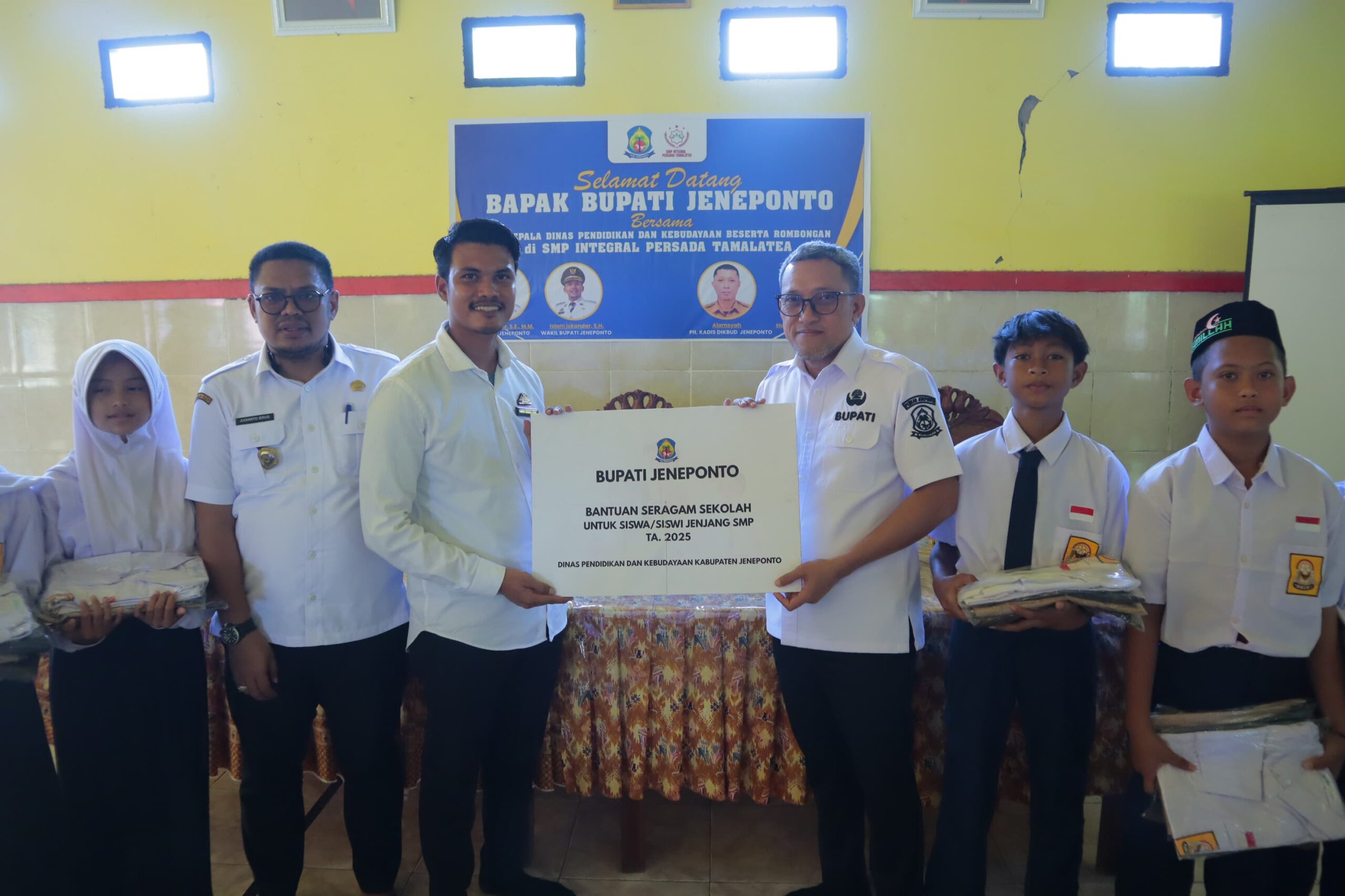 JENEPONTO – pantau24jam.net. Pemerintah Kabupaten Jeneponto melalui Dinas Pendidikan kembali menunjukkan komitmennya dalam mendukung kemajuan dunia pendidikan dengan menyerahkan bantuan seragam sekolah kepada siswa tingkat SMP.
