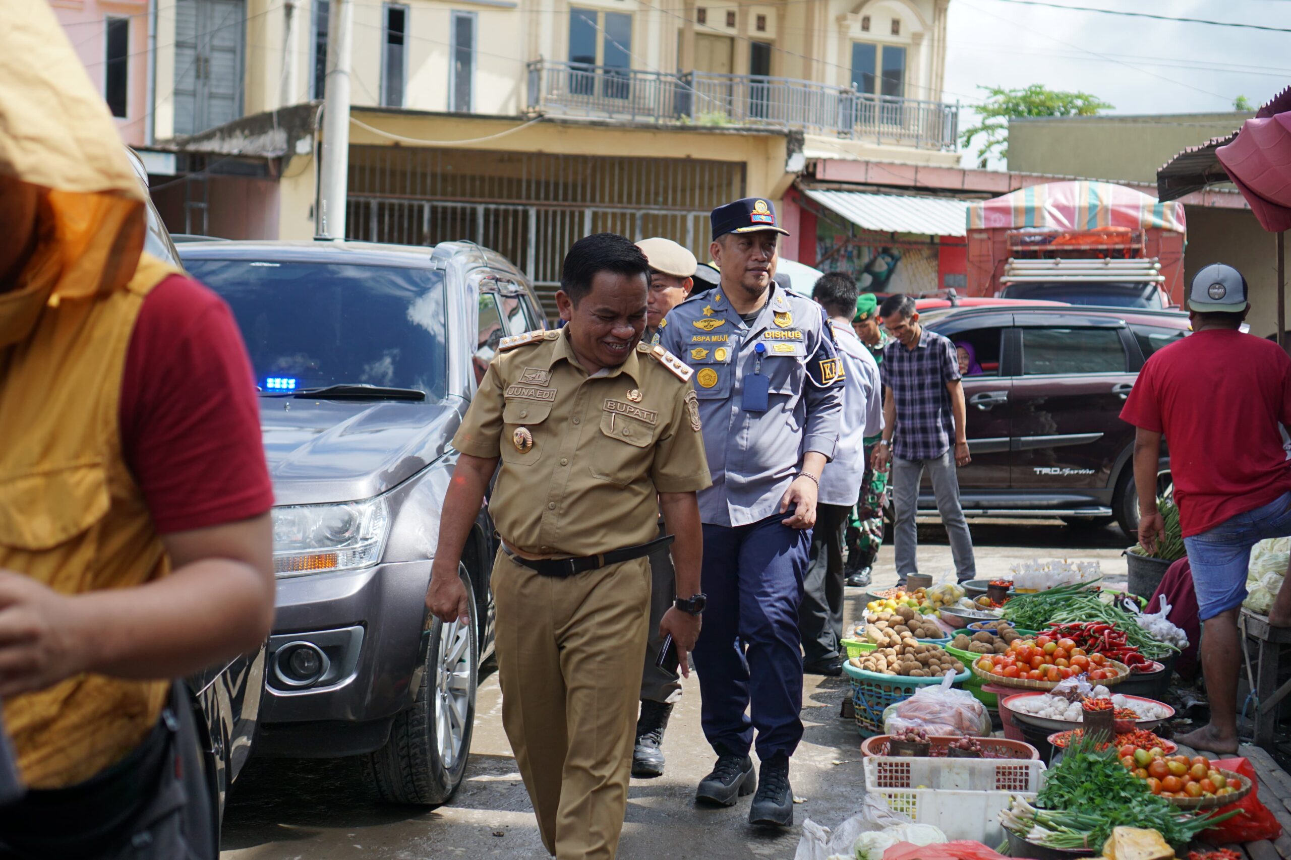 Penjabat Bupati Jeneponto Junaedi Bakri S.Sos,MH bersama Kapolres Jeneponto AKBP Budi Hidayat, Sik, Dandim 1425 Jeneponto Letkol Inf Muhammad Amin, didampingi Asisten II, Kadis Kesehatan, Kadis Perdagin, Kasatpol PP besera rombongan lainnya melakukan inspeksi mendadak (Sidak).