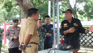 Rombongan juga menyempatkan diri memantau posko Dukom ORARI di halaman kantor Dinas Kominfotik Kab Jenepontom