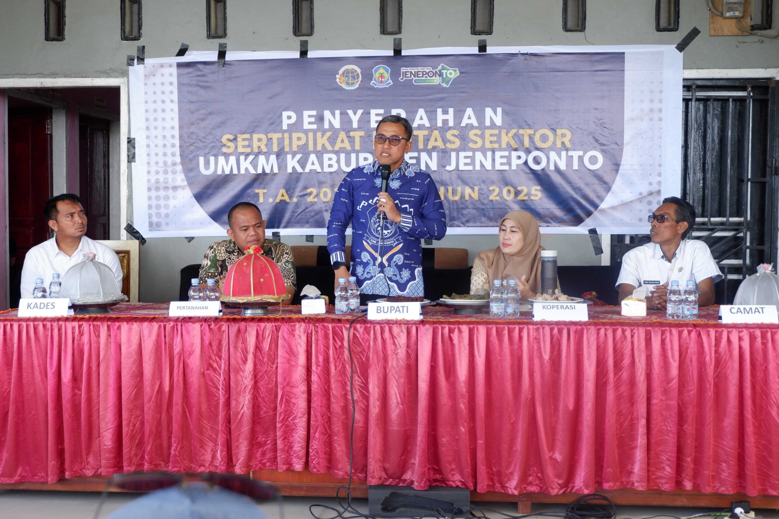 Dalam sambutannya, Bupati Jeneponto menyampaikan bahwa kepemilikan sertifikat tanah tidak hanya memberikan kepastian hukum, tetapi juga dapat dimanfaatkan sebagai modal penguatan ekonomi masyarakat.