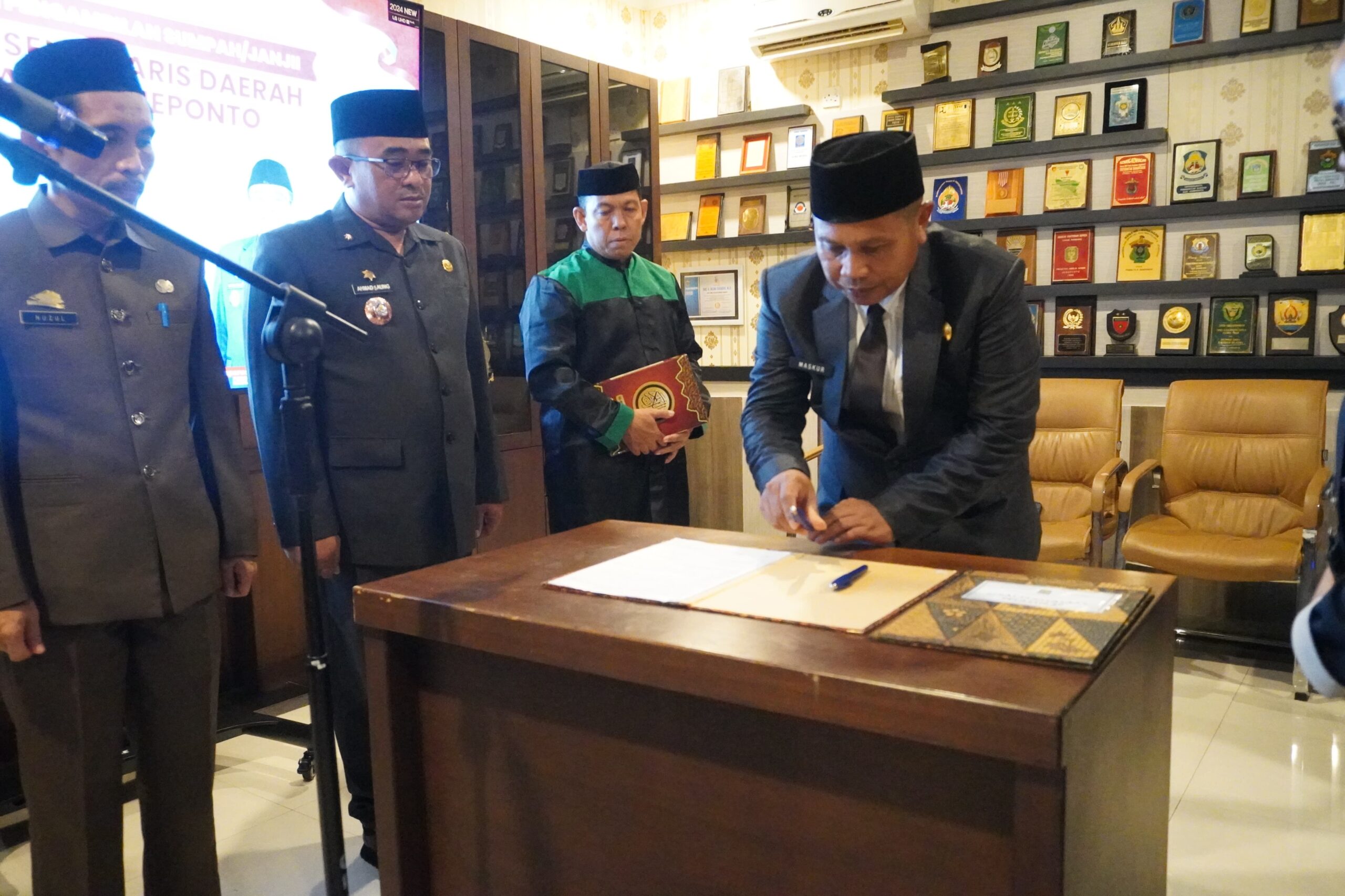 Acara diawali dengan pembacaan Surat Keputusan Bupati Jeneponto oleh Muh. Yusuf, S.Sos., M.M., yang menetapkan Maskur, S.Ag., M.H., CGCAE sebagai Penjabat Sekretaris Daerah Kabupaten Jeneponto.