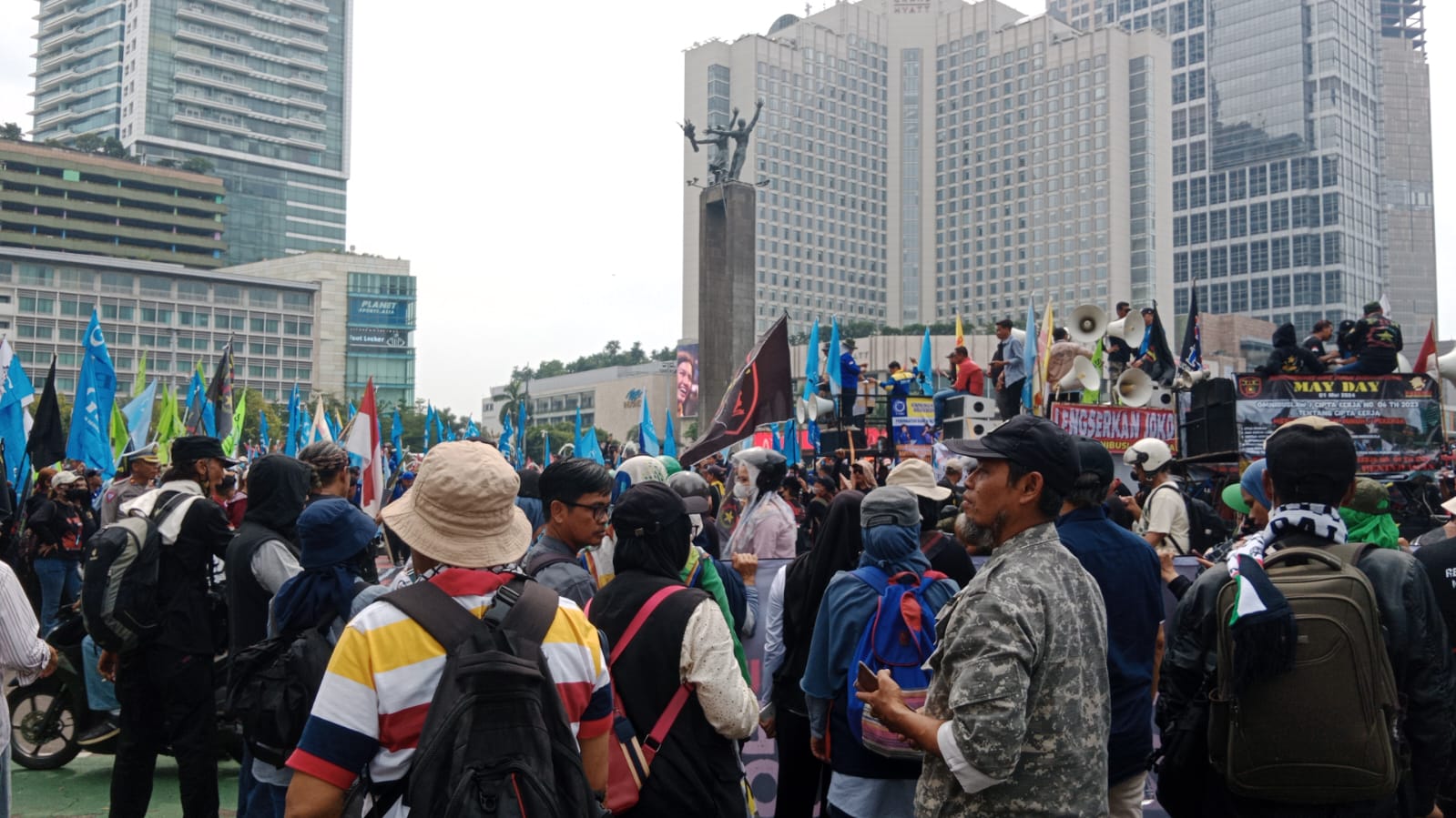 Aksi buruh 1 Mei 2024 yang dilakukan oleh berbagai elemen aksi dengan bingkai Aliansi Aksi Sejuta Buruh bertema Mayday Revolution bukan hanya berjalan lancar tetapi juga dahsyat. Di samping kelompok buruh yang beragam juga atribut yang dibawa dan baliho yang terpampang memiliki warna tersendiri. Berani dan “revolution”.