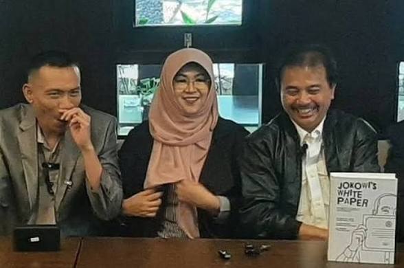 Kita duduk bertiga: aku, kamu, dan dan mas Roy Suryo.