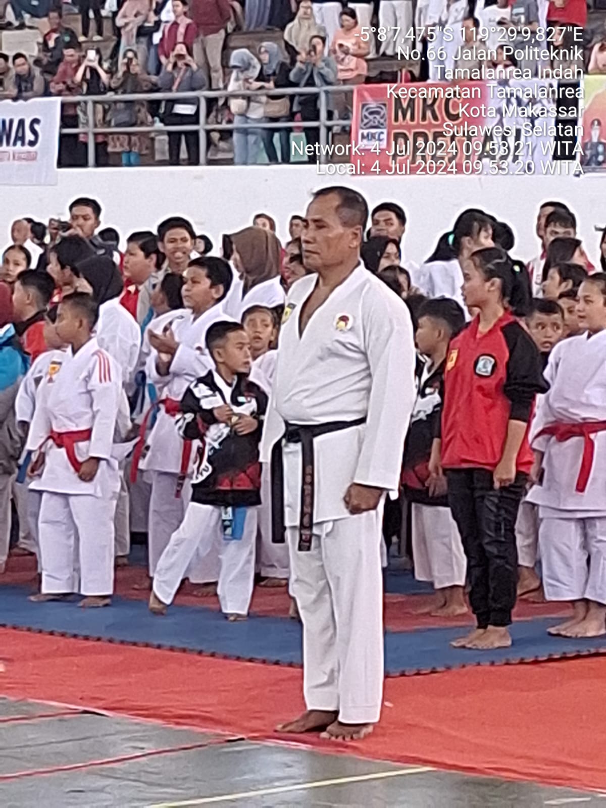 Acara Pembukaan Kejuaraan Piala Presiden International Karate Championship 2024 berlangsung di Gedung Olah Raga JK Arenatorium Universitas Hasanuddin (Unhas) Kota Makassar. Kamis, 4/7/2024 sekira pukul 9.20 Wita.