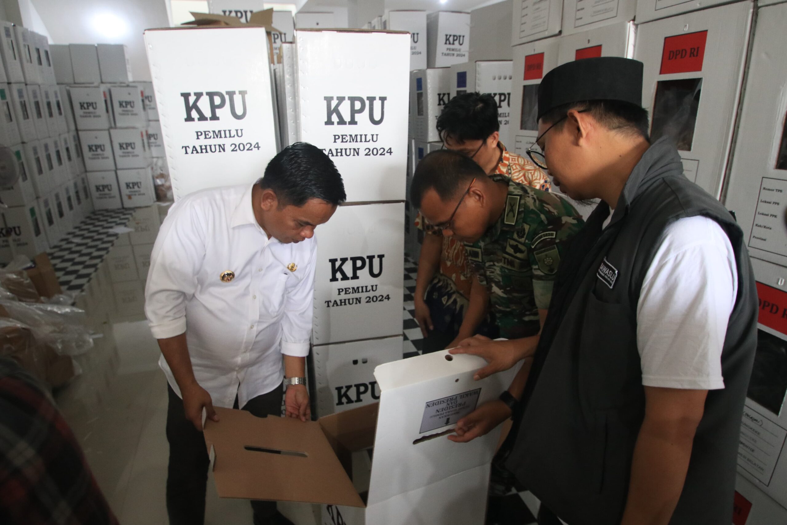 Mengingat hari pemungutan suara tinggal menghtung hari, Pj Bupati Jeneponto, Junaedi Bakri melakukan peninjauan kegudang logistik KPU dengan didampingi unsur Forkopimda, Kapolres, Kejari, Dandim, serta sejumlah kepala OPD.