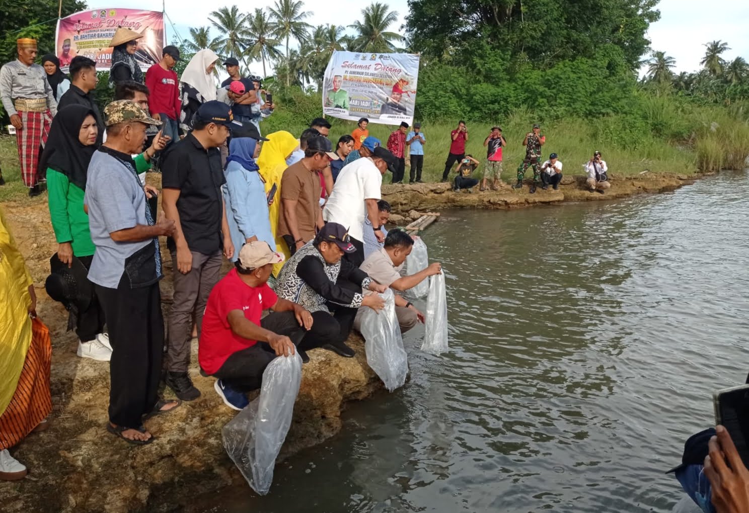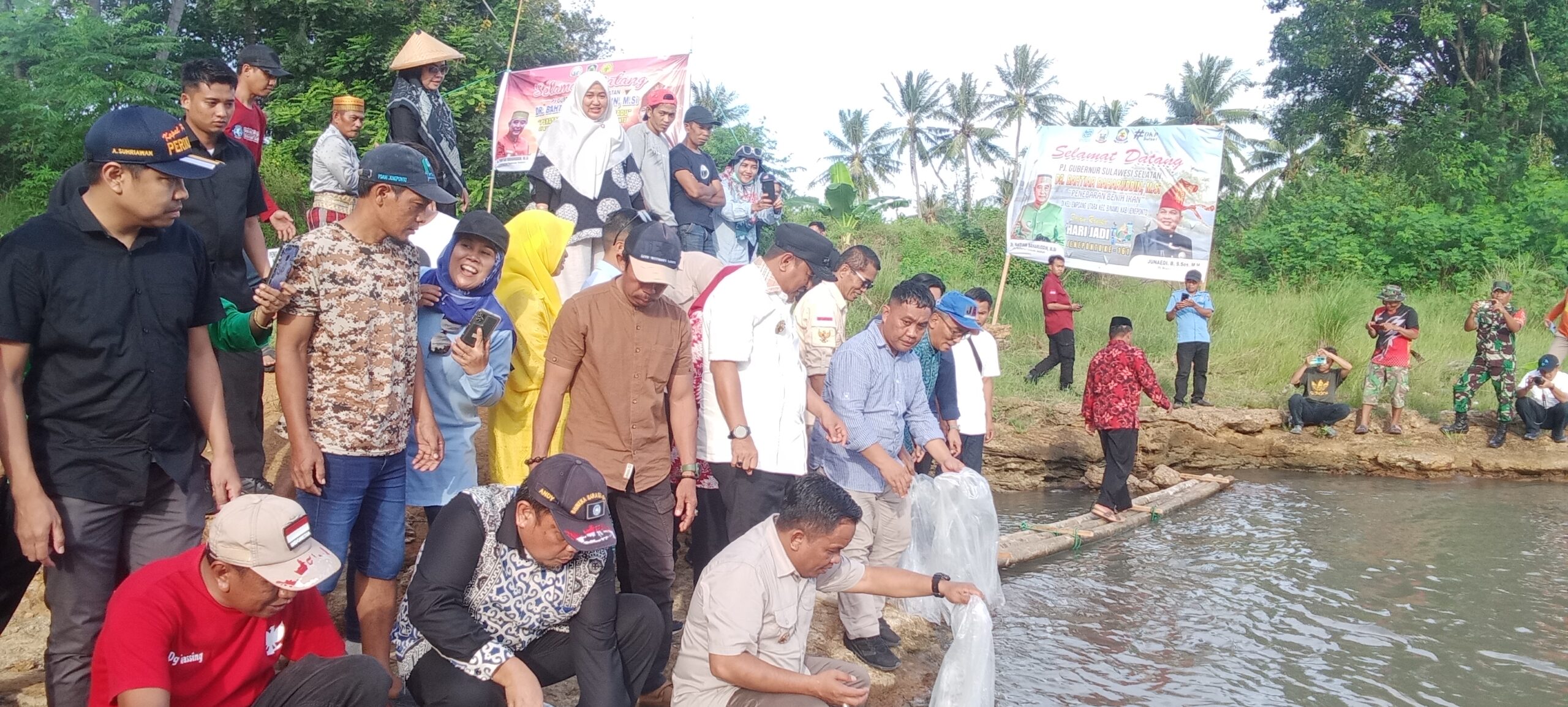 JENEPONTO – pantau24jam.net. Dalam rangkaian kegiatan Hari Jadi Jeneponto ke 161 tahun, Penjabat Gubernur Sulsel, Bahtiar Baharuddin, melakukan penebaran 150 ribu benih ikan air tawar bandeng (bolu).
