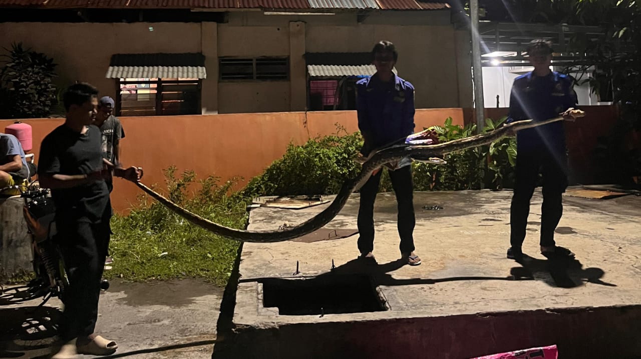 Satu unit armada suplay dikerahkan dan digunakan personil regu satu pemadam kebakaran dan penyelamatan (Damkarmat) untuk melakukan proses penindakan serta evakuasi ular piton.