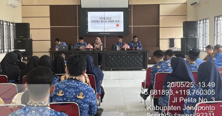JENEPONTO – pantau24jam.net. Dinas Kesehatan (Dinkes) Kabupaten Jeneponto, Sulawesi Selatan (Sulsel) menggelar sosialisasi Peraturan Presiden (Perpres) Nomor 46 tahun 2025 tentang pengadaan barang/jasa. Kegiatan ini berlangsung di Aula As-Syifaa Dinkes Jeneponto. Selasa, 20/5/2025.