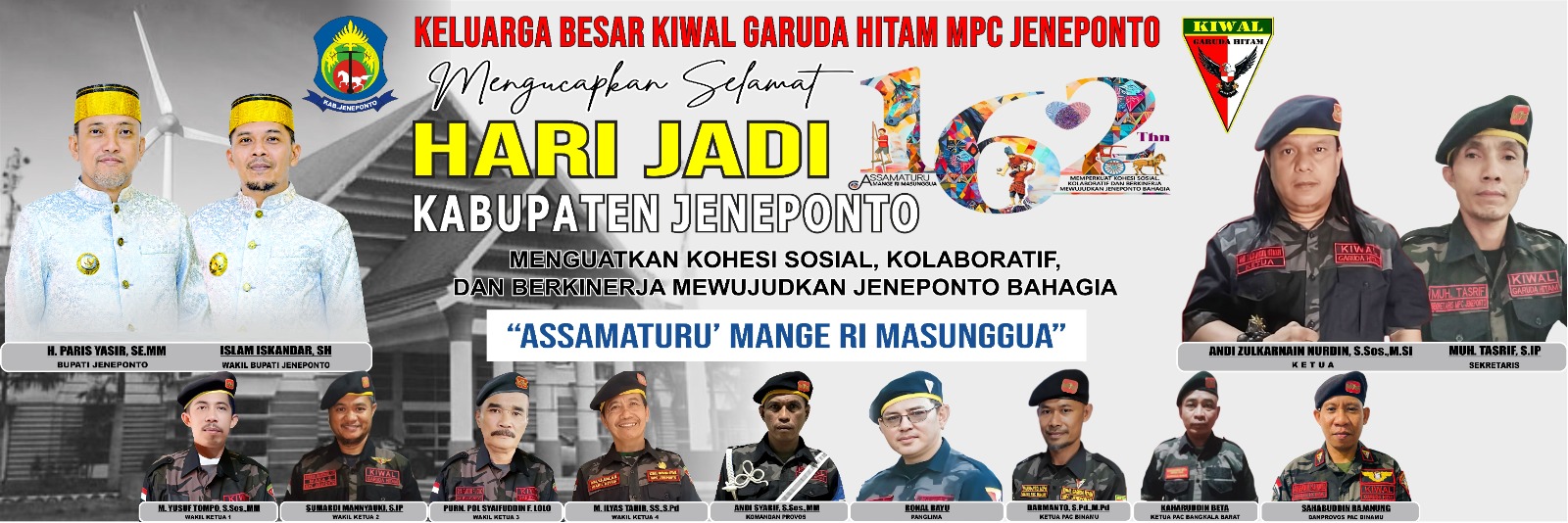 Adapun puncak perayaan Hari Jadi Kabupaten Jeneponto yang ke-162 dipusatkan di halaman Kantor Bupati Jeneponto, Jalan Lanto Dg Pasewang, Bonto Sunggu Kelurahan Empoang Kecamatan Binamu, pada Kamis 1 Mei 2025.