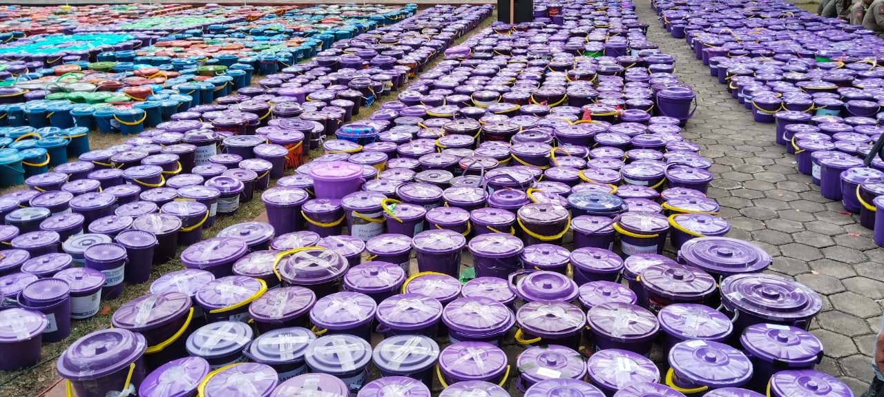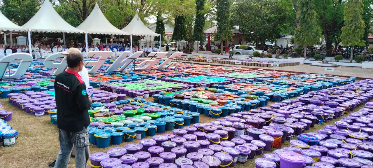 Kegiatan Maudu Turatea disemarakkan dengan bakul dan ember yang berisi beras dan 15 biji telur mentah dan dilaksanakan pada Selasa, 30/9/2025.