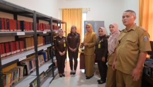 Hj. Syahru Rahmadani, ST.,M.AP selaku ketua tim menyampaikan bahwa, tujuan kunjungan pembinaan yang dilakukan selain untuk monitoring dan evaluasi pengelolaan perpustakaan khusus Kejaksaan Negeri.