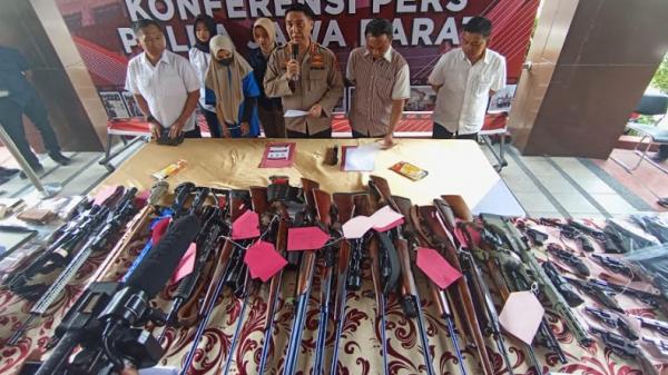 Dalam penangkapan itu, polisi menyita belasan senjata api ilegal. Jenis senjat api tersebut laras panjang maupun pendek. Selain itu polisi juga menyita ribuan butir peluru.