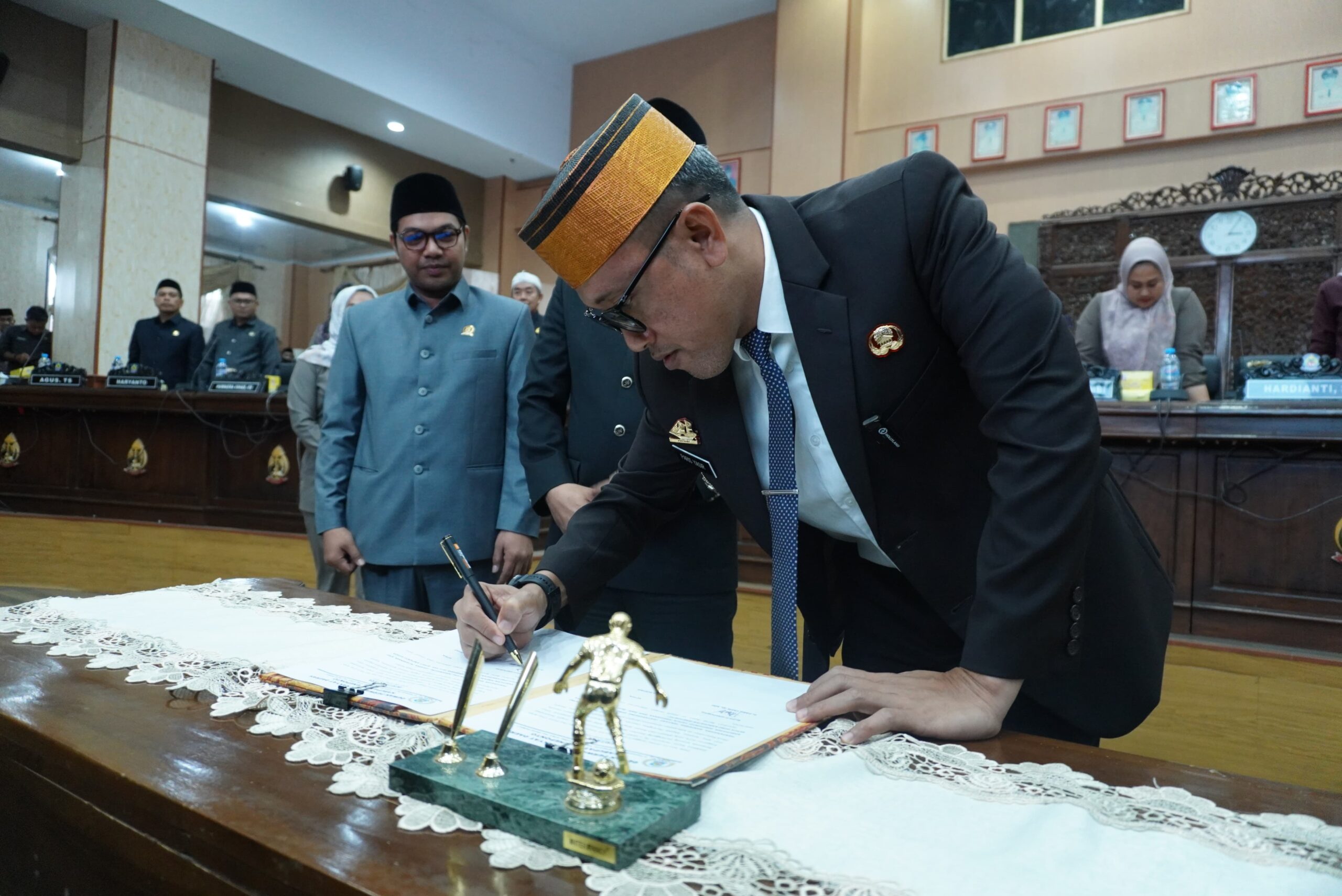 “Bahwa kepala daerah menyampaikan ranperda tentang pertanggungjawaban pelaksanaan APBD kepada DPRD, paling lambat enam (6) bulan setelah tahun anggaran berakhir, untuk mendapatkan persetujuan bersama atas ranperda tersebut paling lambat 30 (tiga puluh hari) terhitung sejak diterimanya dokumen ranperda”, ujar Bupati.