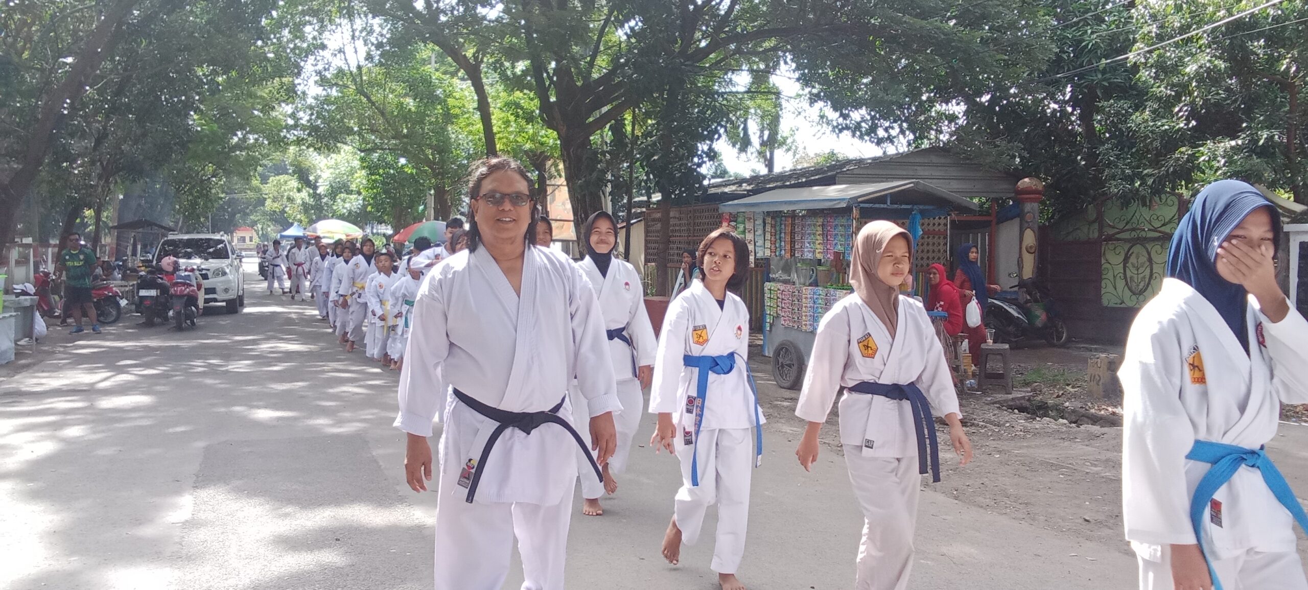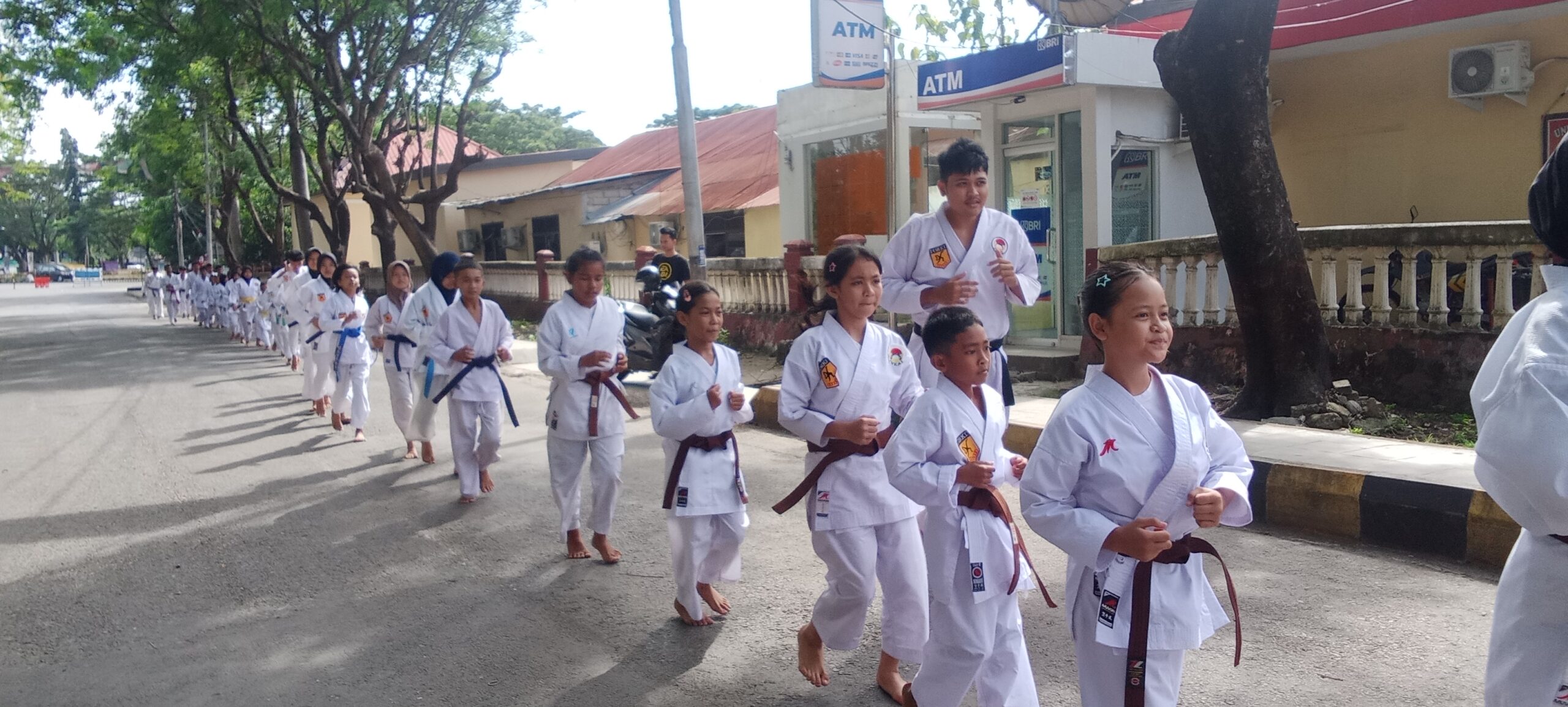 Nampak anggota karate berkumpul di tribun lapangan Passmaturukang pada pukul 08.00 kemudian jalan kaki (long March) ke patung kuda, samping Polres, depan dinas pariwisata, depan kantor BPS lalu masuk ke halaman kantor bupati, depan Dinas Infokom dan kembali ke Passamaturukang.