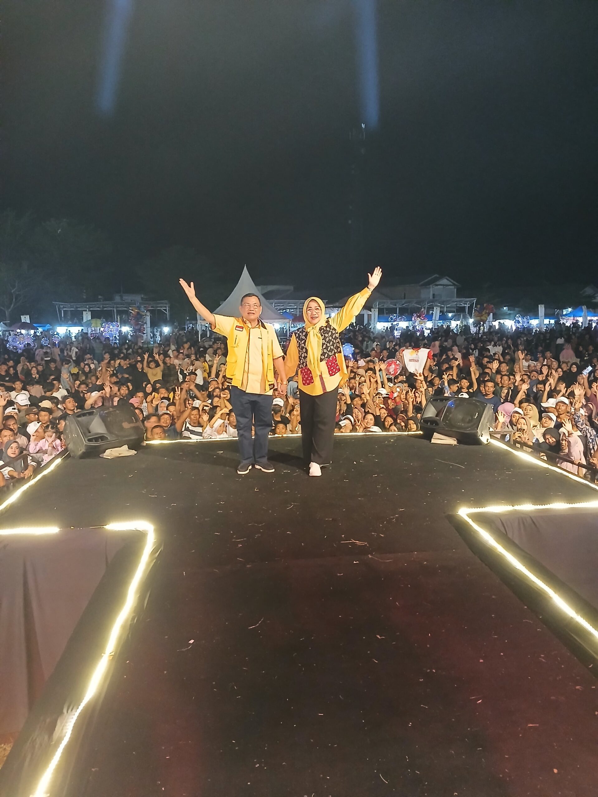 “Malam hari ini sengaja kami persembahkan acara yang kami beri nama Gebyar Lampung Maju, tujuannya apa, yakni partai Golkar selaku partai pengusung utama pasangan Bapak Prabowo-Gibran pada Pemilu 2024 pada tanggal 14 Februari yang lalu, Alhamdulillah mendapat suara 71, 77% di Kabupaten Mesuji, untuk itu atas nama Partai Golkar selaku partai pengusung utama mengucapkan terimakasih kepada seluruh masyarakat Kabupaten Mesuji, kemudian yang kedua, Alhamdulillah di Kabupaten Mesuji pemilu yang lalu partai Golkar mendapat 5 kursi di DPRD Kabupaten Mesuji untuk Partai Golkar, untuk itu sekali lagi kami mengucapkan terimakasih, kemudian saya Alhamdulillah terpilih juga sebagai anggota DPR RI 2024-2029 pada pemilu yang lalu, untuk itu saya juga mengucapkan terimakasih, pada malam hari ini, saya mau melapor kepada seluruh masyarakat Kabupaten Mesuji bahwa Saya dicalonkan oleh Partai Golkar sebagai Bakal Calon Gubernur Lampung 2024-2029 untuk itu Saya mengajak seluruh masyarakat Kabupaten Mesuji untuk merapatkan barisan, kita sukseskan pemilihan Gubernur pada tanggal 27 November 2024 yang akan datang, kita sukseskan pemilihan Bupati di Kabupaten Mesuji, saya ingin bertanya kepada seluruh masyarakat yang hadir disini, pada tanggal 27 November 2024 yang akan datang akan memilih Bupati siapa?, tanya Hanan, langsung dijawab ribuan simpatisan “Ahmad Yulivan Nurullah”, kemudian Gubernurnya siapa?”, lanjut Hanan, dan tegas dijawab ribuan Masyarakat, “Hanan A Rozak”.