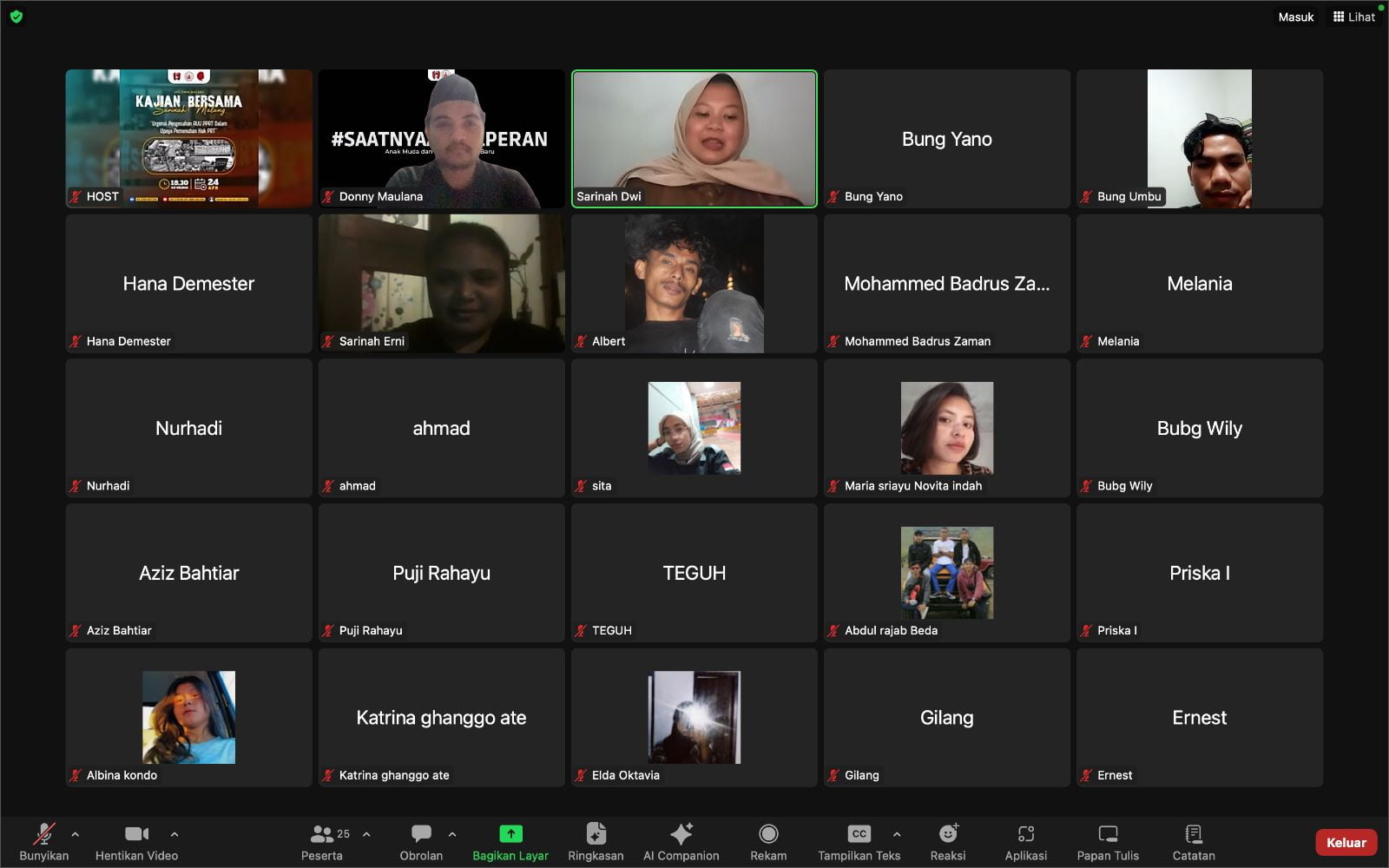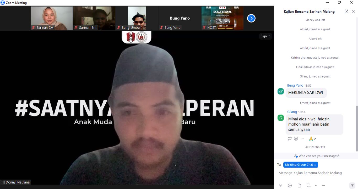 Forum yang dilaksanakan secara daring tersebut diikuti oleh puluhan kader-kader putri (Sarinah) GMNI se Cabang Malang.
