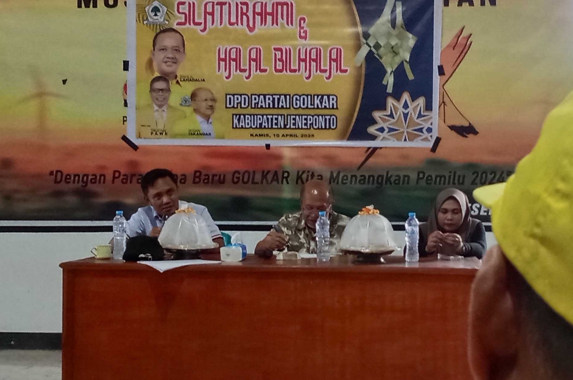 “Kita sepakat ya, acara Halal Bi Halal hari Sabtu 12 April 2025 jam 9 Pagi surat undangannya menyusul dan seluruh kader memakai atribut Golkar atau boleh gamis kuning berkopiah. Diharapkan pula seluruh organisasi sayap hadir di acara Halal Bi Halal dalam moment silaturahmi”, pungkasnya.