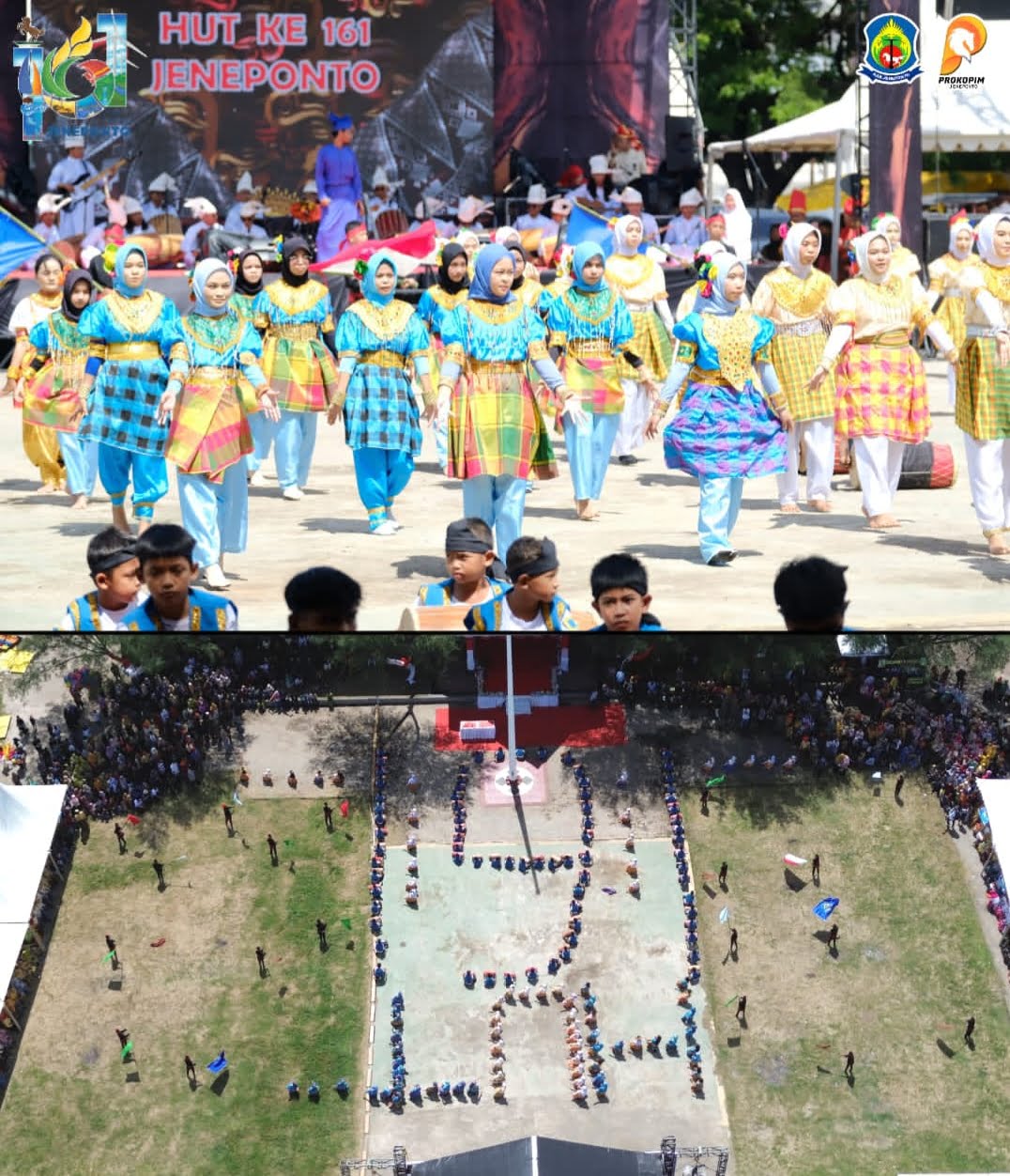 Kemeriahan hari jadi Jeneponto dengan menghadirkan atraksi Drum Band dari IPDN Sulawesi Selatan, penampilan kolosal 200 orang penari dan pemain gendang binaan Dinas Pendidikan dan Kebudayaan Kabupaten Jeneponto.