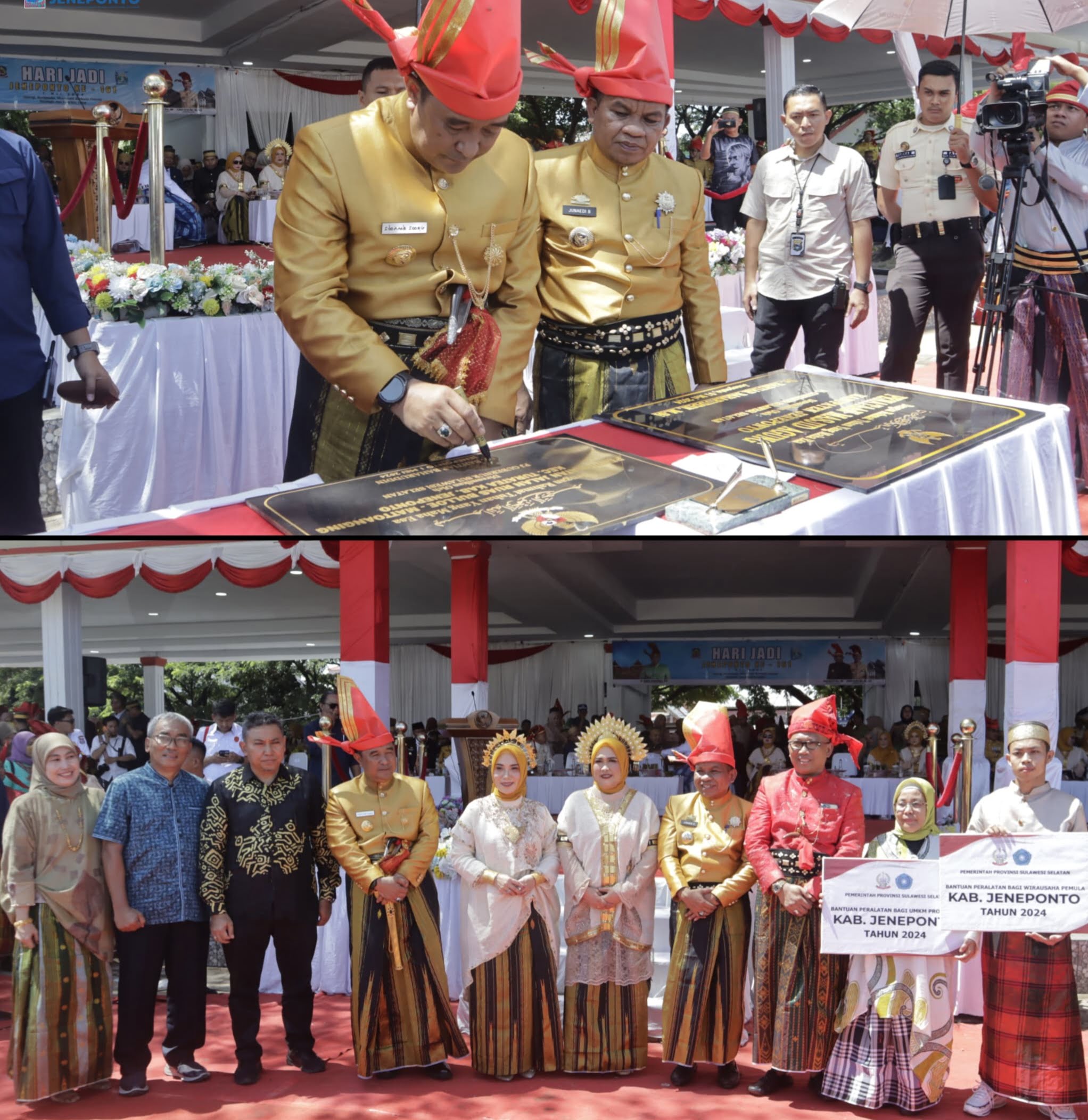 Pj Gubernur Sulsel menandatangani beberapa prasasti proyek pembangunan di Jeneponto dan menyerahkan beberapa bantuan kepada Pemerintah Kabupaten Jeneponto. Sedangkan Pj Bupati Jeneponto menandatangani kerjasama antara pemda Jeneponto dengan beberapa lembaga.