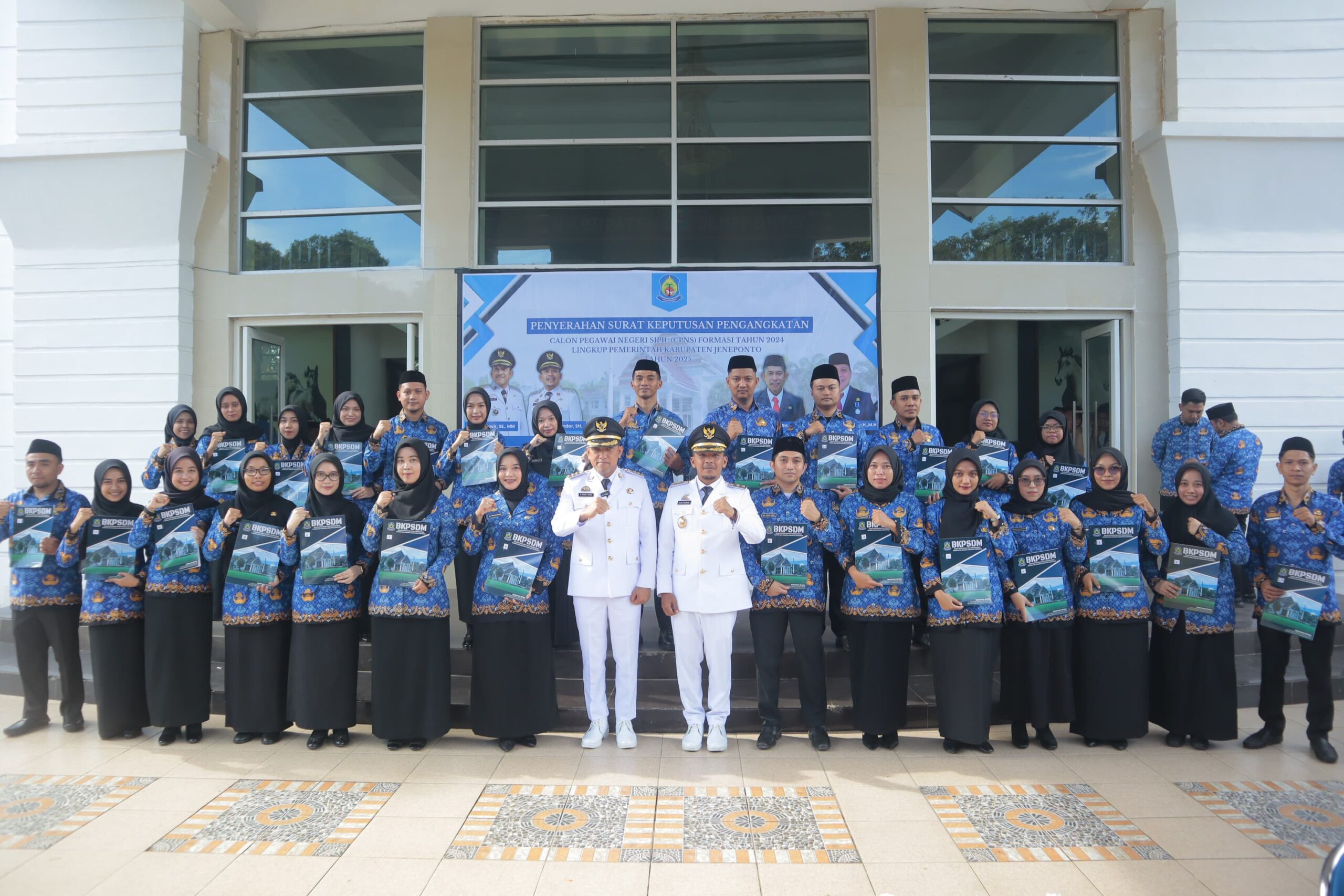 “Selamat kepada seluruh CPNS yang telah menerima SK hari ini. Jadilah pelayan masyarakat yang tangguh, jujur, dan berkomitmen tinggi. Pemerintah daerah menaruh harapan besar kepada kalian untuk menjadi bagian dari penguatan birokrasi yang bersih dan berkinerja,” tegasnya.
