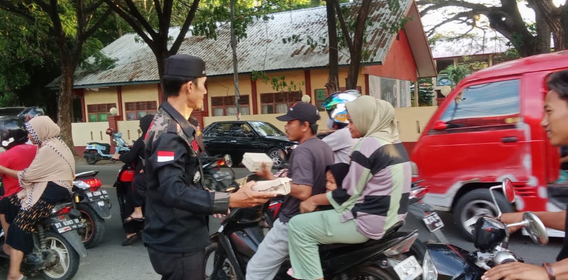 Sebanyak 300 takjil disalurkan kepada warga pengendara motor dan mobil yang melintas di kawasan simpang tiga, Belokallong Kelurahan Balang Toa Kecamatan Binamu Kabupaten Jeneponto Sulsel. Jum’at, 23/3/2024.