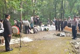 Jenazah korban dimakamkan dengan cara kedinasan, di Dusun Sambong, Desa Sumberjo, Kecamatan Plandaan, Kabupaten Jombang.