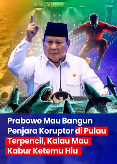Gara gara Prabowo membuat penjara pulau terpencil, maka Jokowi “sang koruptor” yang tidak tahu malu itu dimakan hiu.