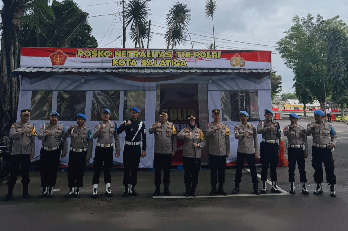 Kapolres Salatiga AKBP Aryuni Novitasari, M.Psi, M.Si, Psi, menyampaikan bahwa Posko Netralitas TNI-Polri didirikan di seputar Lapangan Alon-Alon Pancasila Salatiga atau tepatnya di Depan Mako Polres Salatiga.