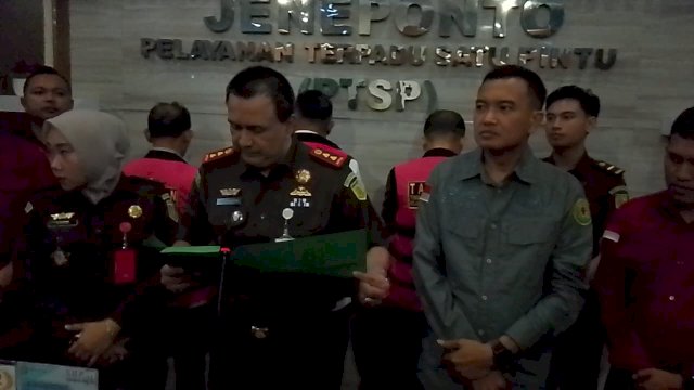 Kepala Kejaksaan Negeri Jeneponto, Teuku Lufthansa Adhyaksa, dalam konferensi pers yang digelar pada Rabu malam (11/6/2025) didampingi oleh Kasi Pidsus, Anggi dan Kasi Intelijen Muh Zahroel Ramadhana. Ketiga tersangka turut dihadirkan dalam konferensi tersebut.
