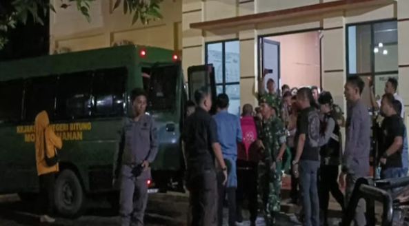 Rompi merah dan borgol menyala, pemandangan dramatis terjadi di halaman Kantor Kejari Bitung. Para tersangka dengan tangan terborgol, mengenakan rompi merah muda—identitas tahanan tindak pidana korupsi—satu per satu naik ke dalam mobil tahanan. Tak ada pernyataan, tak ada pembelaan. Semua tunduk dalam diam.
