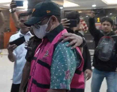 Salah satu tersangka yang resmi menggunakan rompi tahanan adalah mantan Pejabat (Pj) Gubernur Sulawesi Selatan berinisial BB.