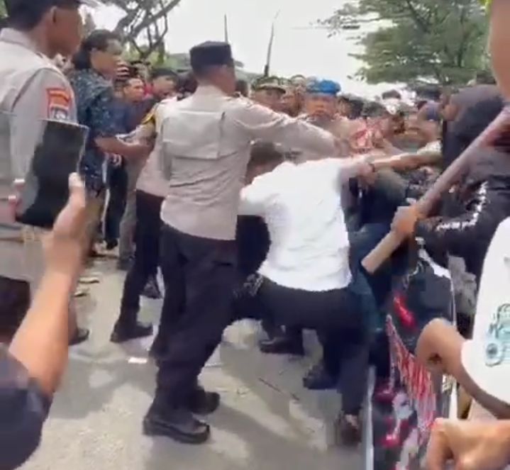 Dalam aksi tersebut, sempat terjadi gesekan dan saling dorong antara massa aksi dengan personel Polres Jeneponto.