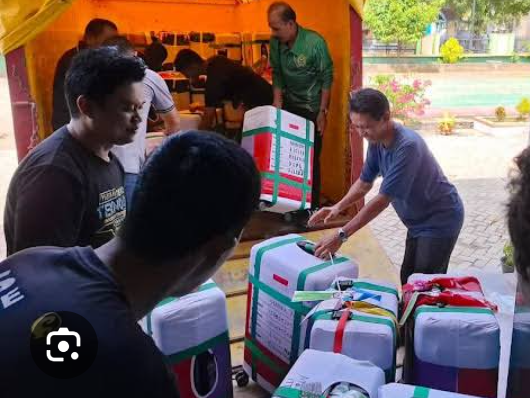 Kepala Kantor Kementerian Agama Kabupaten Sinjai yang diwakili Kepala Seksi Penyelenggra Haji dan Umrah Hj. Kamriati Anies menerangkan bahwa koper-koper jemaah ini diangkut menggunakan 2 (dua) buah truk yang difasilitasi pemerintah daerah Kab. Sinjai. Kamis (1/5/2025) bertempat di Gedung PLHUT Kemenag Sinjai
