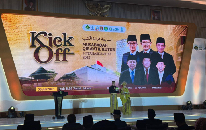 Kick-off MQK Internasional diresmikan langsung Menteri Agama, Nasaruddin Umar di Aula HM Rasjidi, Kemenag Jakarta, Selasa (8/7/2025).