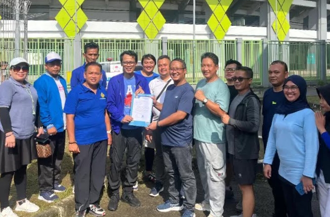 Ketua DPD Partai Gema Bangsa Kota Bekasi, M. Zaki menerimanya secara langsung dalam momentum olahraga bersama itu.