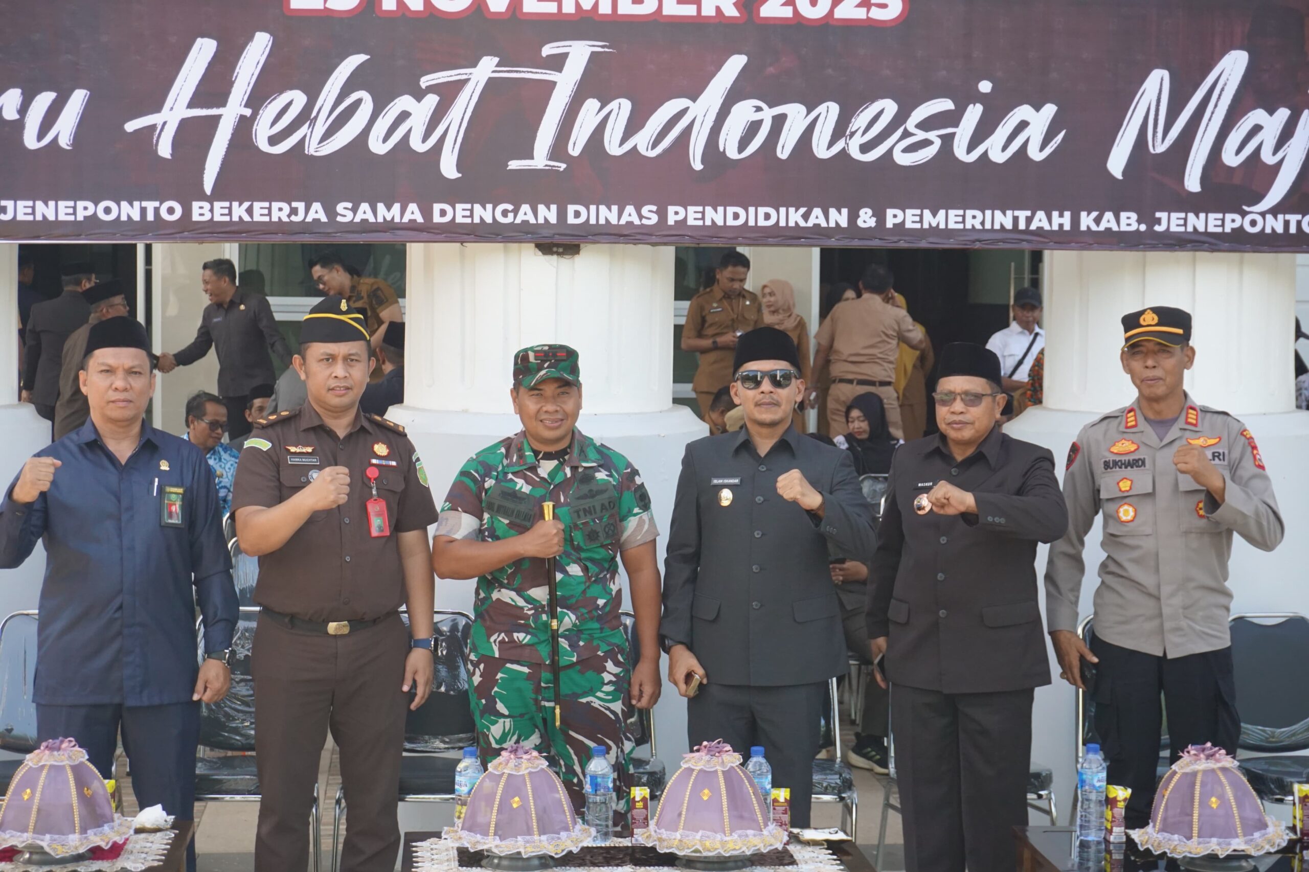 “Peranan guru tidak pernah tergantikan. Melalui keteladanan, keikhlasan, dan profesionalisme, para guru telah menjadi cahaya bagi masa depan anak-anak kita. Dengan semangat ‘Guru Hebat, Indonesia Maju’, mari kita terus berkomitmen meningkatkan kualitas pendidikan di Kabupaten Jeneponto”, jelasnya.