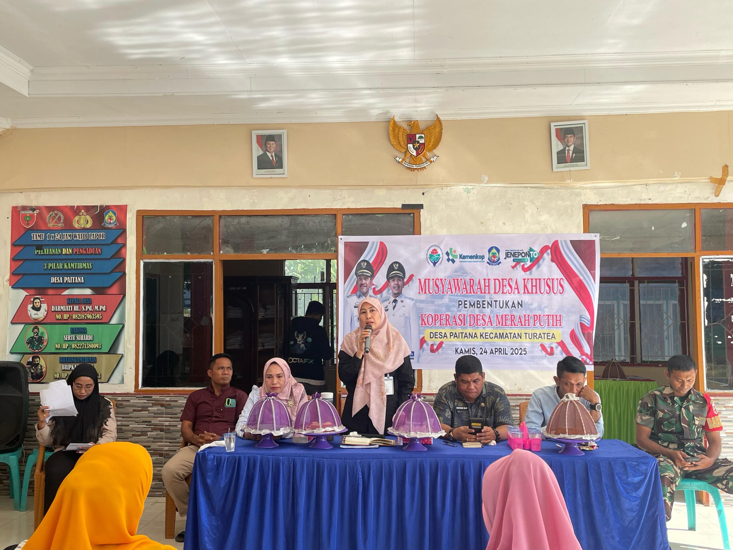 Acara ini digelar di Aula Kantor Desa Kaluku dan dihadiri oleh Kepala Dinas Koperasi dan UKM Jeneponto, Mernawati, serta Kepala Dinas PMD Jeneponto, M.Basuki Baharuddin, selaku dua institusi pelaksana percepatan pembentukan koperasi di daerah.