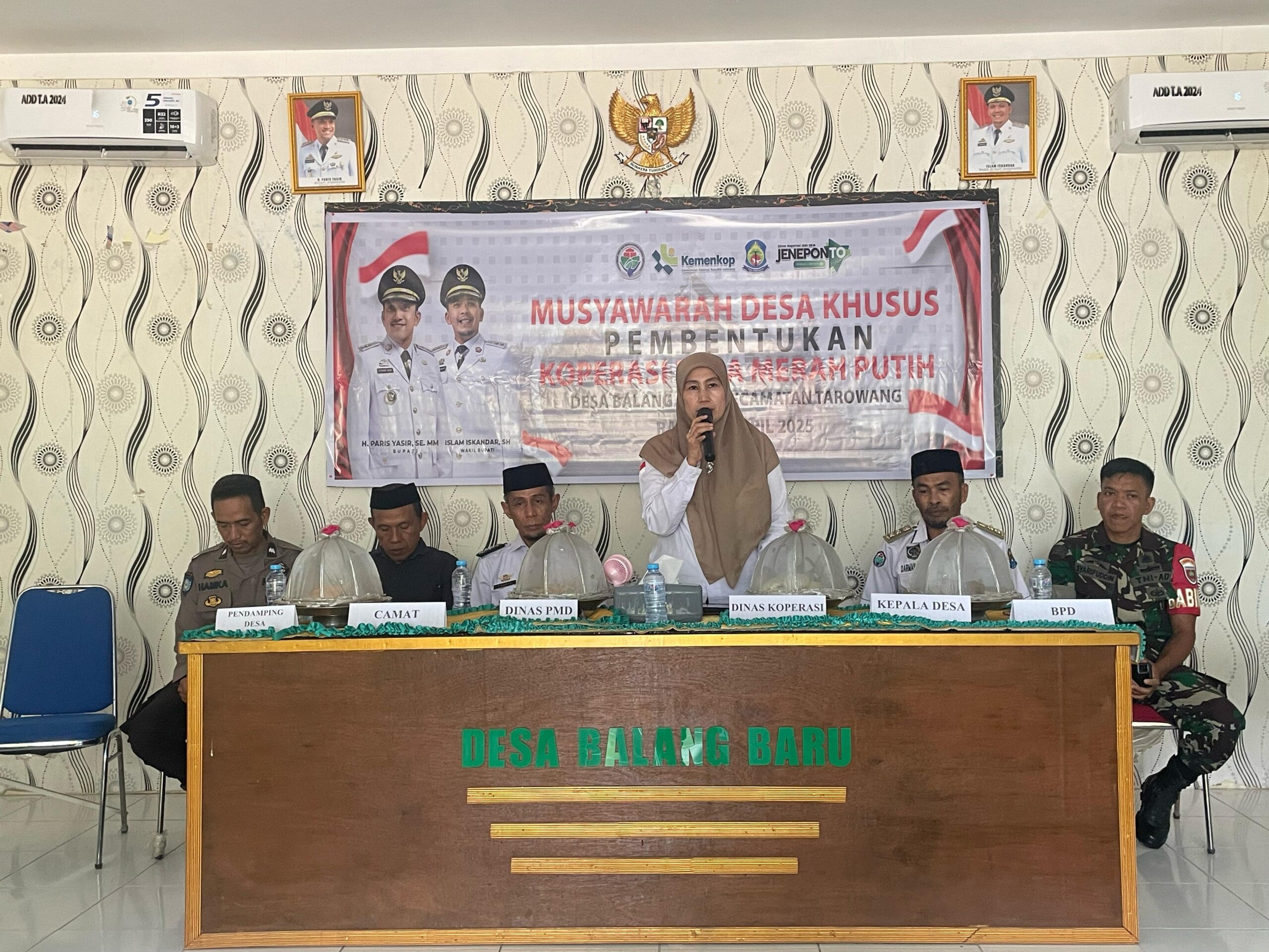 Setelah kegiatan di Desa Kaluku, pada hari yang sama Musdes Khusus juga dilaksanakan di Desa Balang Baru, Kecamatan Tarowang. Kepala Desa Balang Baru, Darman Patta, menyatakan komitmen penuh dalam menyukseskan koperasi di desanya.