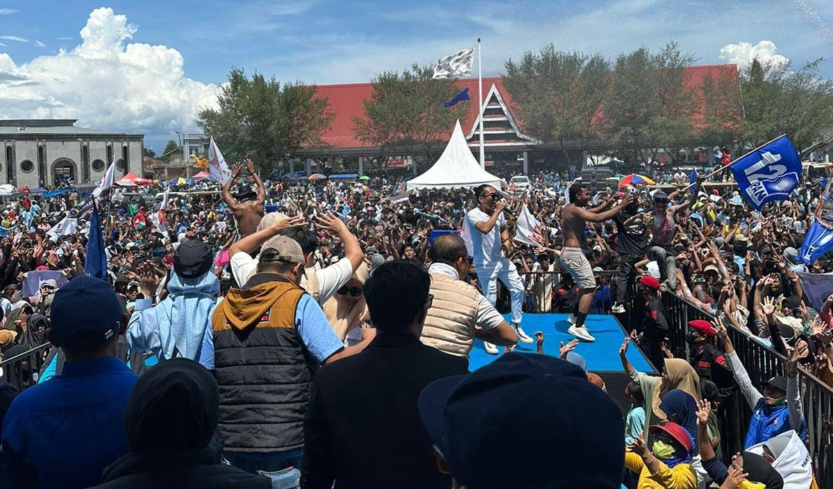 Antusias massa datang menggunakan kendaraan roda dua dan roda empat sambil berteriak yel-yel nomor urut 4, menuju Lapangan Passamaturukang untuk mengikuti Kampanye Akbar.