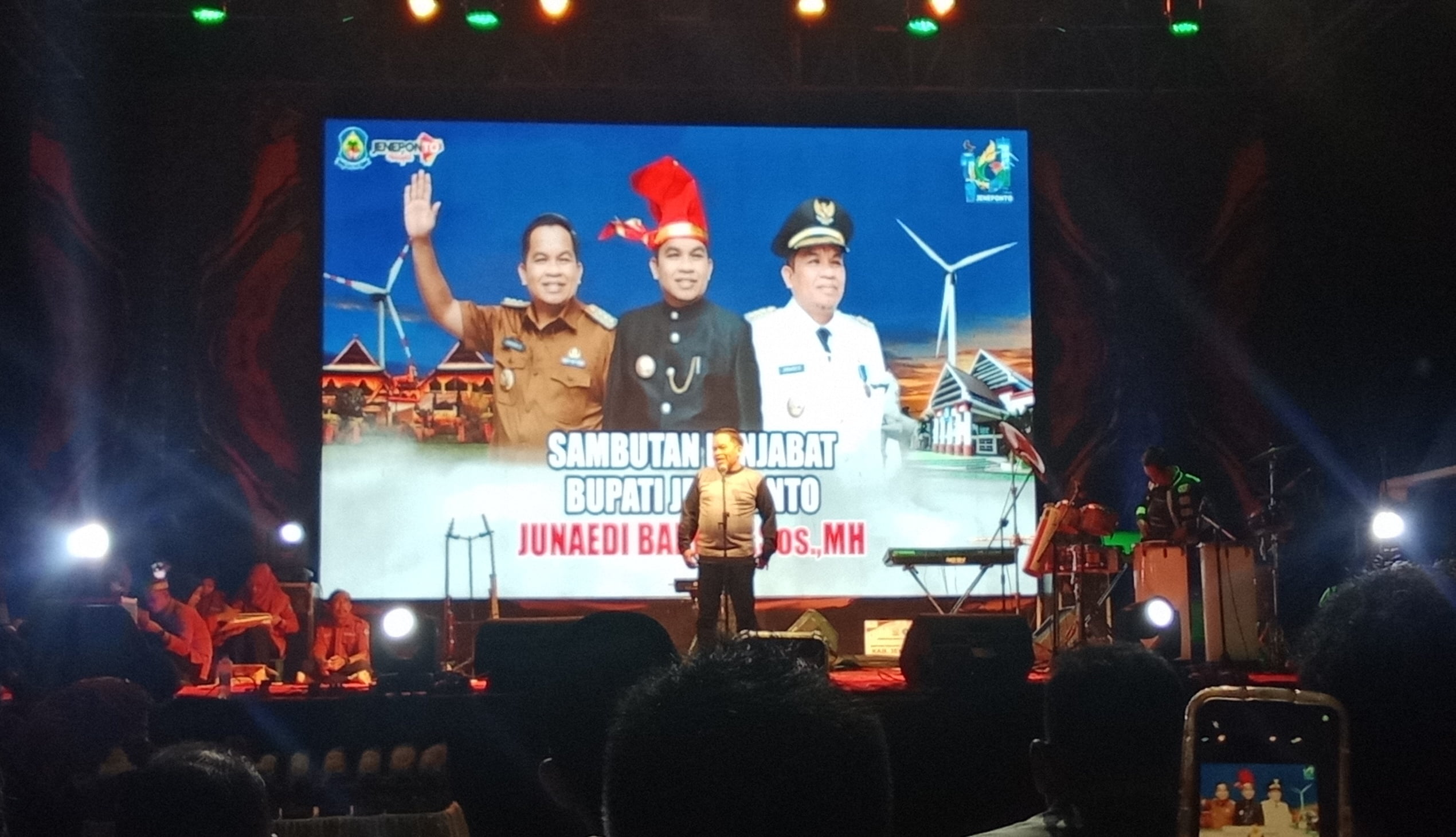 Bupati Jeneponto, Junaedi Bakri S.Sos M.Si dalam sambutannya menyampaikan, malam hiburan rakyat ini adalah permintaan dan kerinduan masyarakat Jeneponto untuk menhibur warga butta turatea.