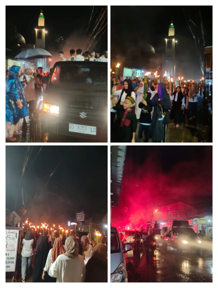 GOWA – pantau24jam.net.Pawai obor dimalam takbiran diguyur hujan dan tidak menyurutkan semangat anak-anak dan remaja dalam melakukan takbir keliling yang dilaksanakan oleh Kerukunan Pemuda Lingkungan Pao-Pao Kec Somba Opu Kab Gowa Susel. Selasa, 9/4/2024